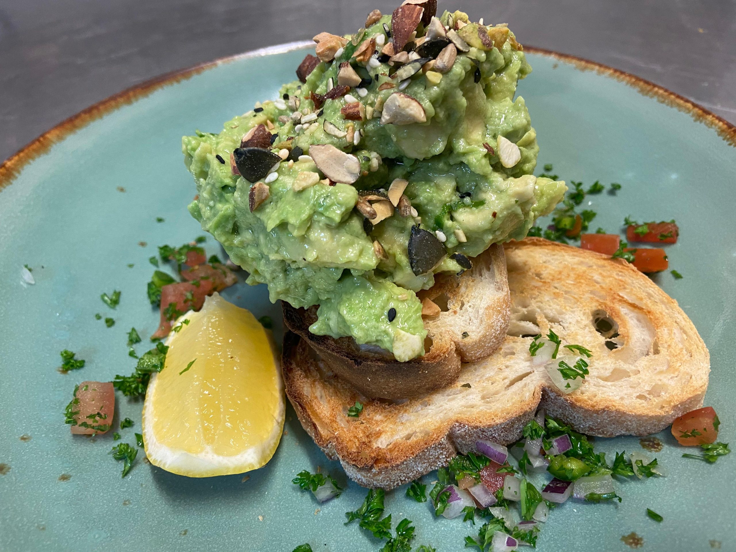 Avocado, mint, lime & marinated fetta on Milawa sourgough toast w/local pumpkin seeds & nut dukkah & house made dressing (GF option) & balsamic glaze (add poached egg $4)